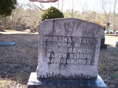 ![]() Martha Tate wife of J. A. Bowen March 5, 1876 April 22, 1923