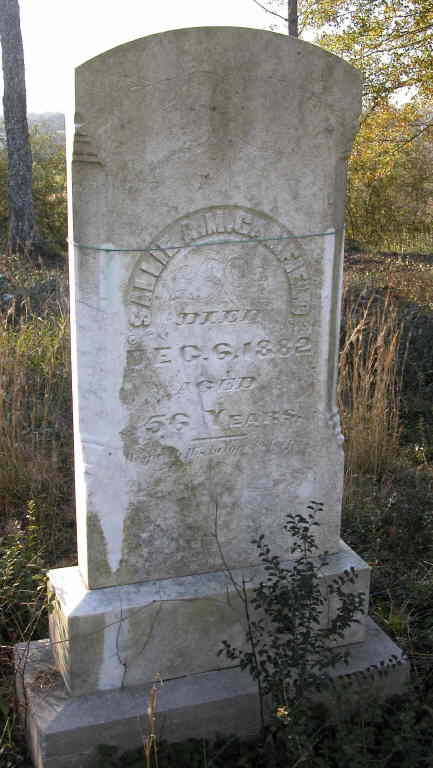 Sallie A. M. Camfield Died December 6, 1882 Aged 56 Years. He grivet His beloved sleep.