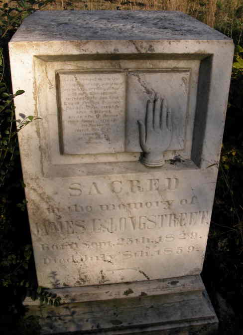 SACRED to the memory of James C. Longstreet. Born September 25th, 1829. Died July 8th, 1859.