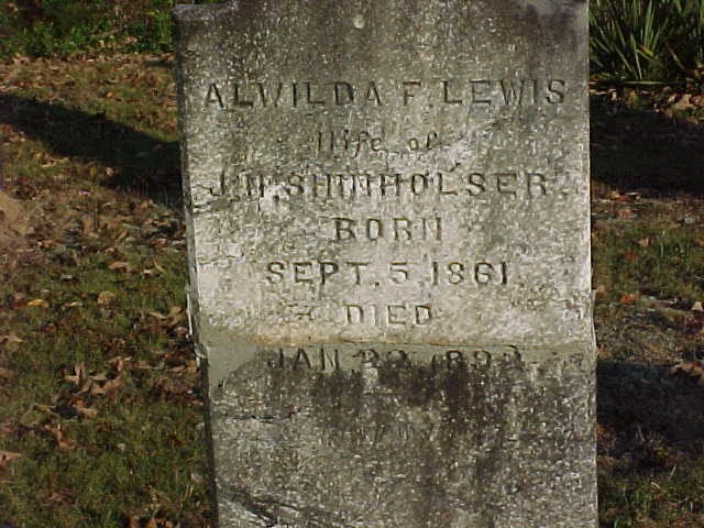 ![]() Alwilda F. Lewis wife of J. N. Shinholster Born September 5, 1861 Died January ??, 1894 (?)