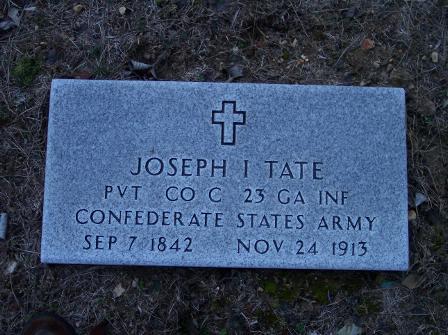 ![]() Joseph I. Tate PVT CO C 23 GA INF Confederate States Army September 7, 1842 - November 24, 1913