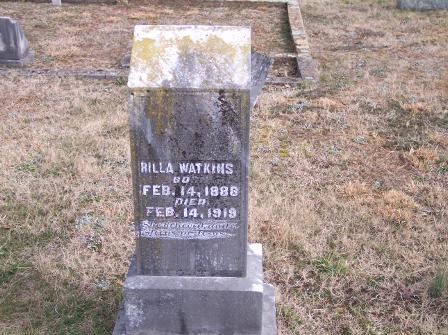 Rilla Watkins Born February 14, 1888 Died February 14, 1919 'She believed, and sleeps in Jesus' |