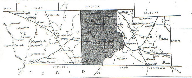Messenger a map of Thomas, Decatur and Grady Counties, Grady being shown in the