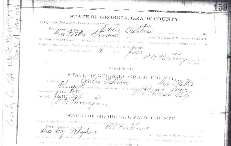 | Wooten, O.G. | Singletary, Mattie | 31 Jan 1907 | A 37 |