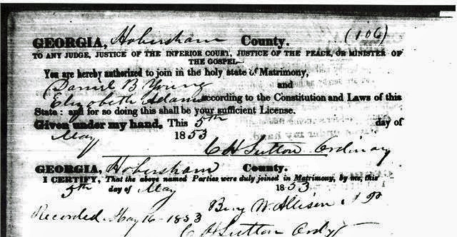 Marriage of Young, Daniel B. & Elizabeth Adams, May 5, 1853