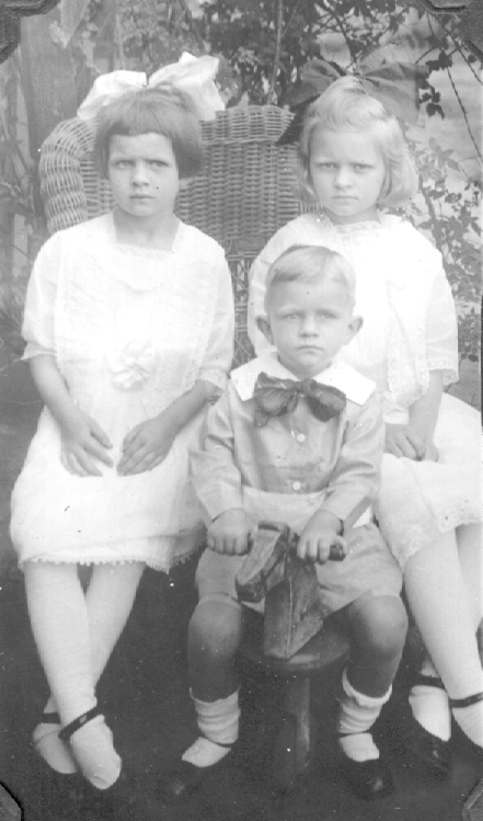 My father with sisters Sarah and Evelyn around 1917 and with Martha and Jabus around 1923