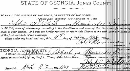 v. Sarah Elizabeth (Lizzie) Newby, born January 18, 1855; died January 08, 1911 in Jones Co, GA; married William B. Russell February 01, 1877 in Jones Co, GA; born May 03, 1854; died July 18, 1931.