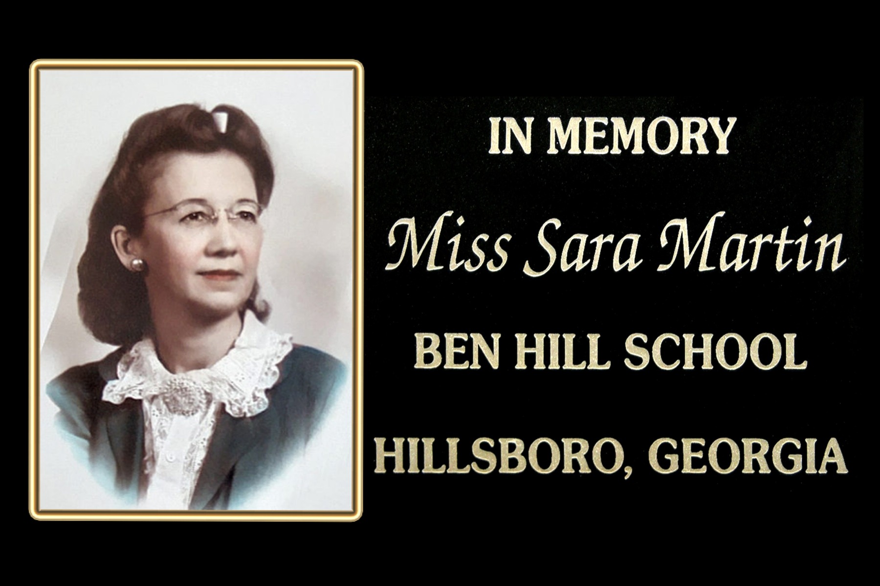 In Memory of Miss Sara Martin Teacher at Ben Hill School