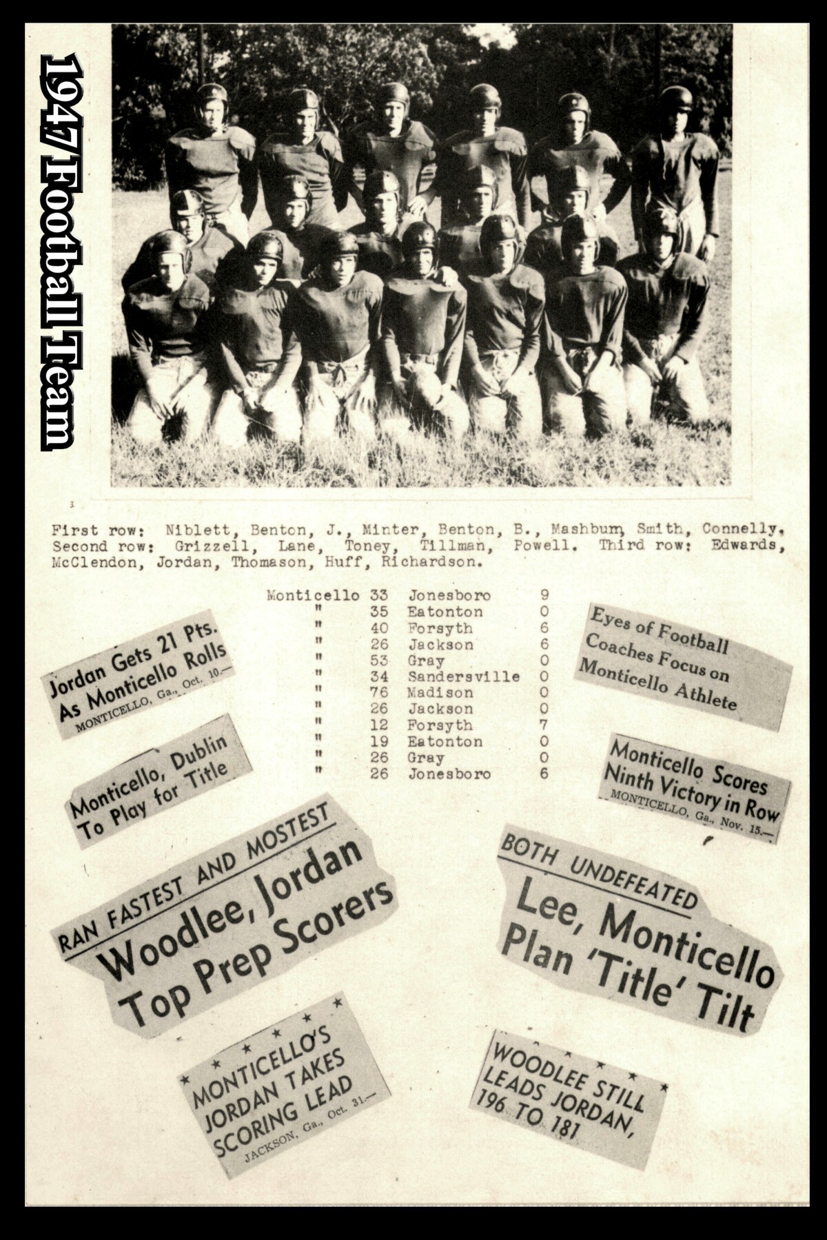 1947 Monticello High School Players - First string