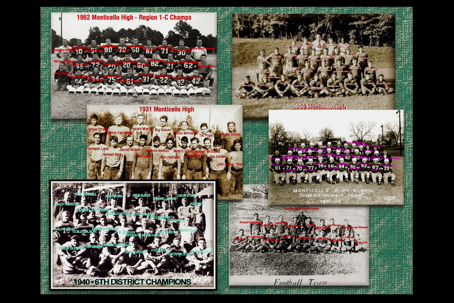 Collage of Football Teams - 1931 - 1962