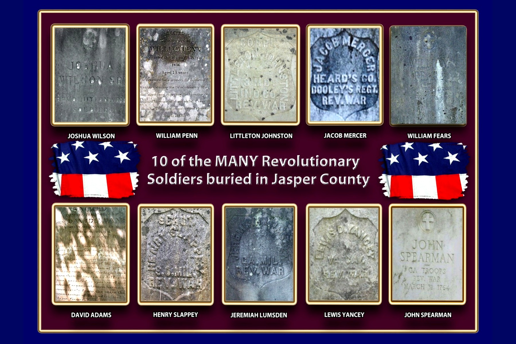 Collage of some of the many Revolutionary Soldier Headstones in Jasper County