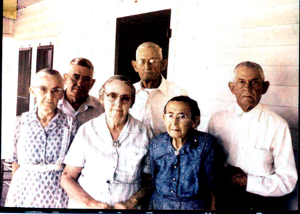 Hutcheson children taken 14 Aug 1956 on Stella's birthday. Left to right: Bessie (Smith), Hinton, Nennie (Barwick),