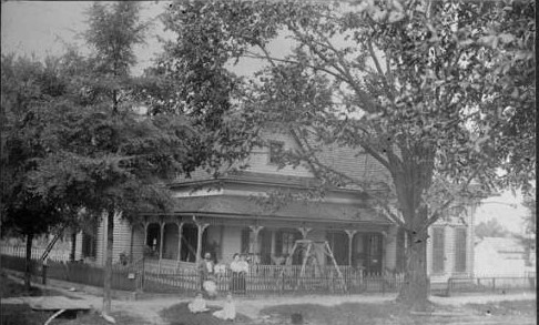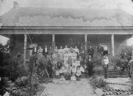 Henry G Wheeler and his wife Leoria Constantia Dudley Wheeler with their children beside their home which was located