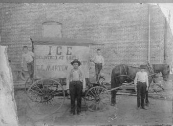 T L Martin (center) stands besides his ice wagon, Wrightsville ca 1905-1910.