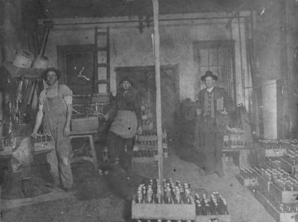 crates of bottled drinks are stacked everywhere, ca early 1900's.