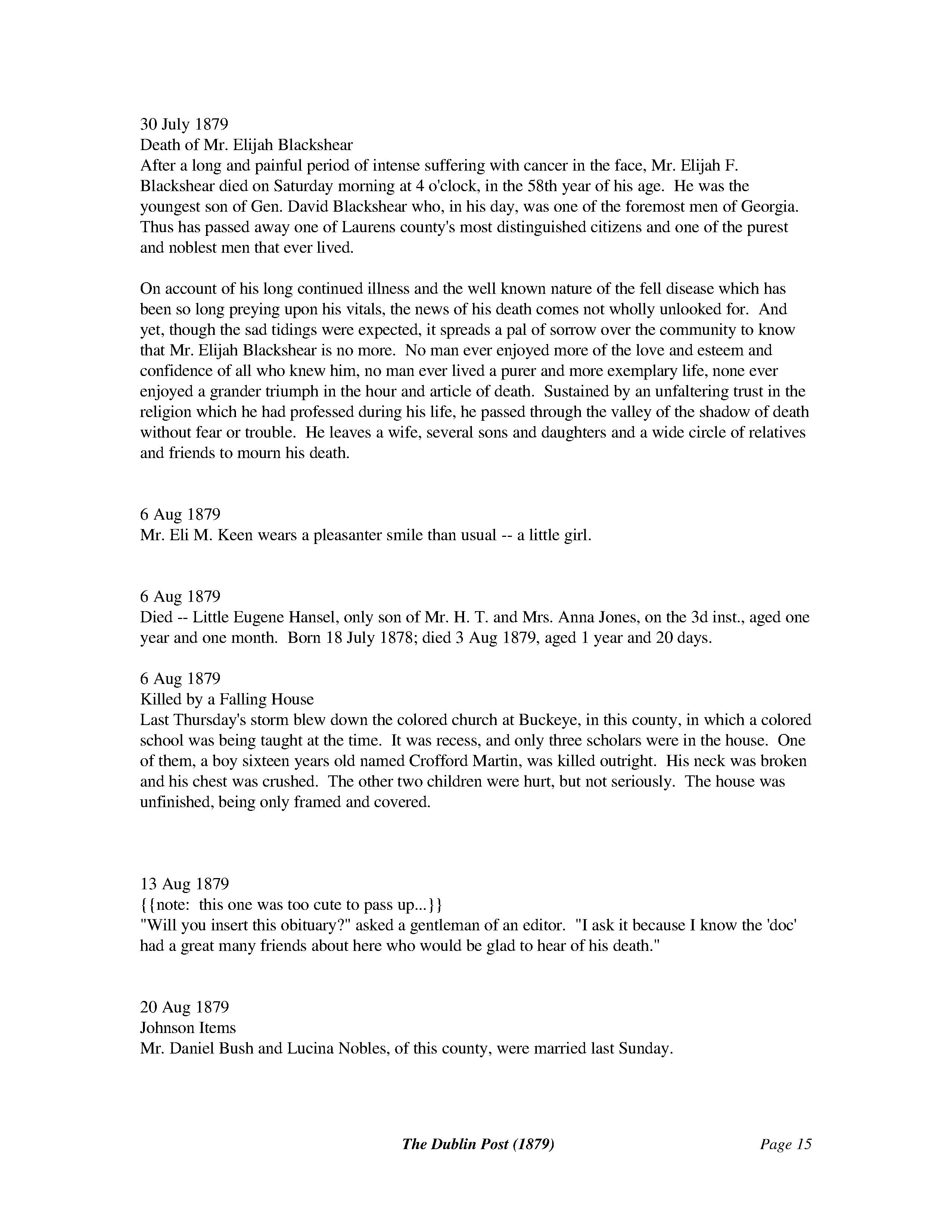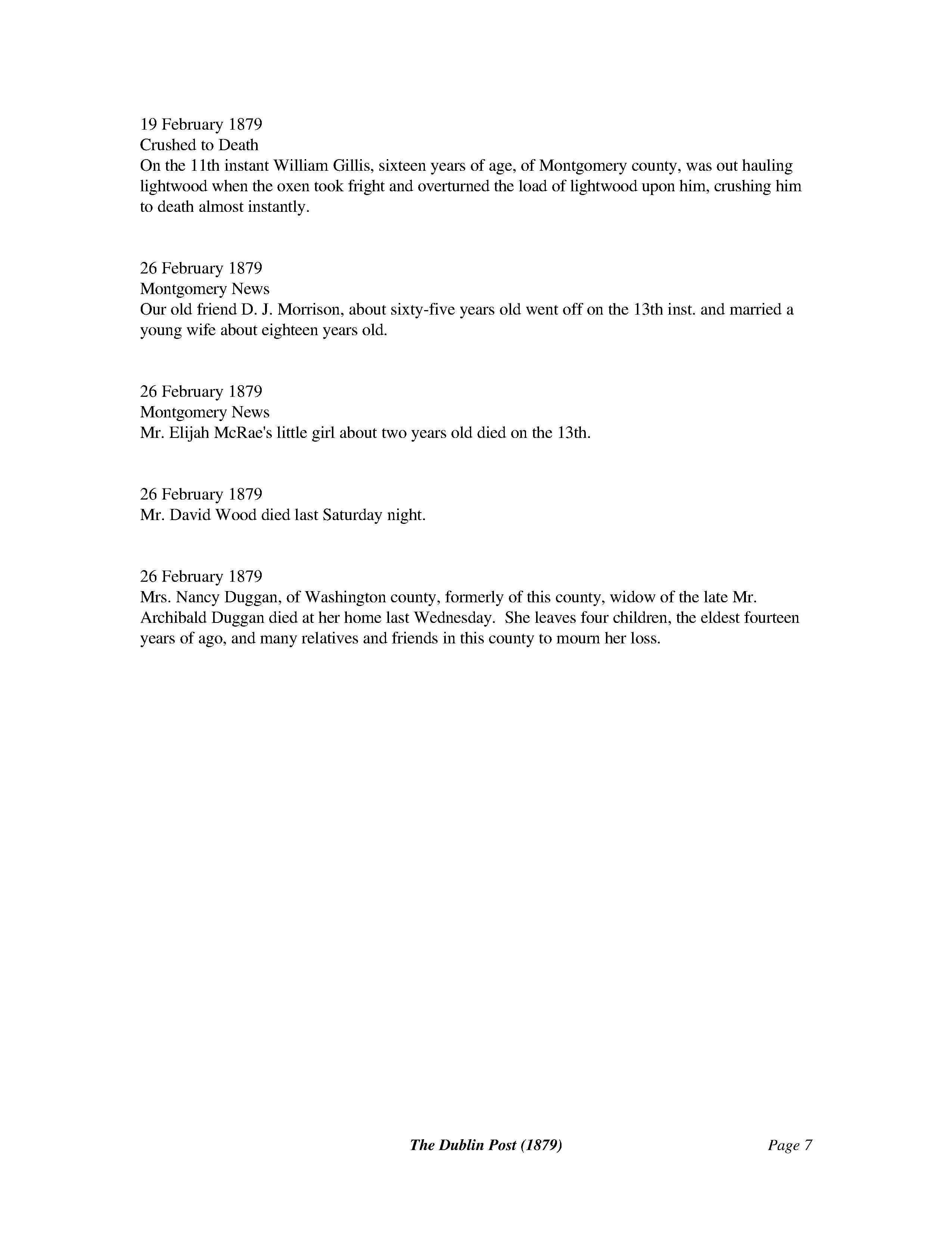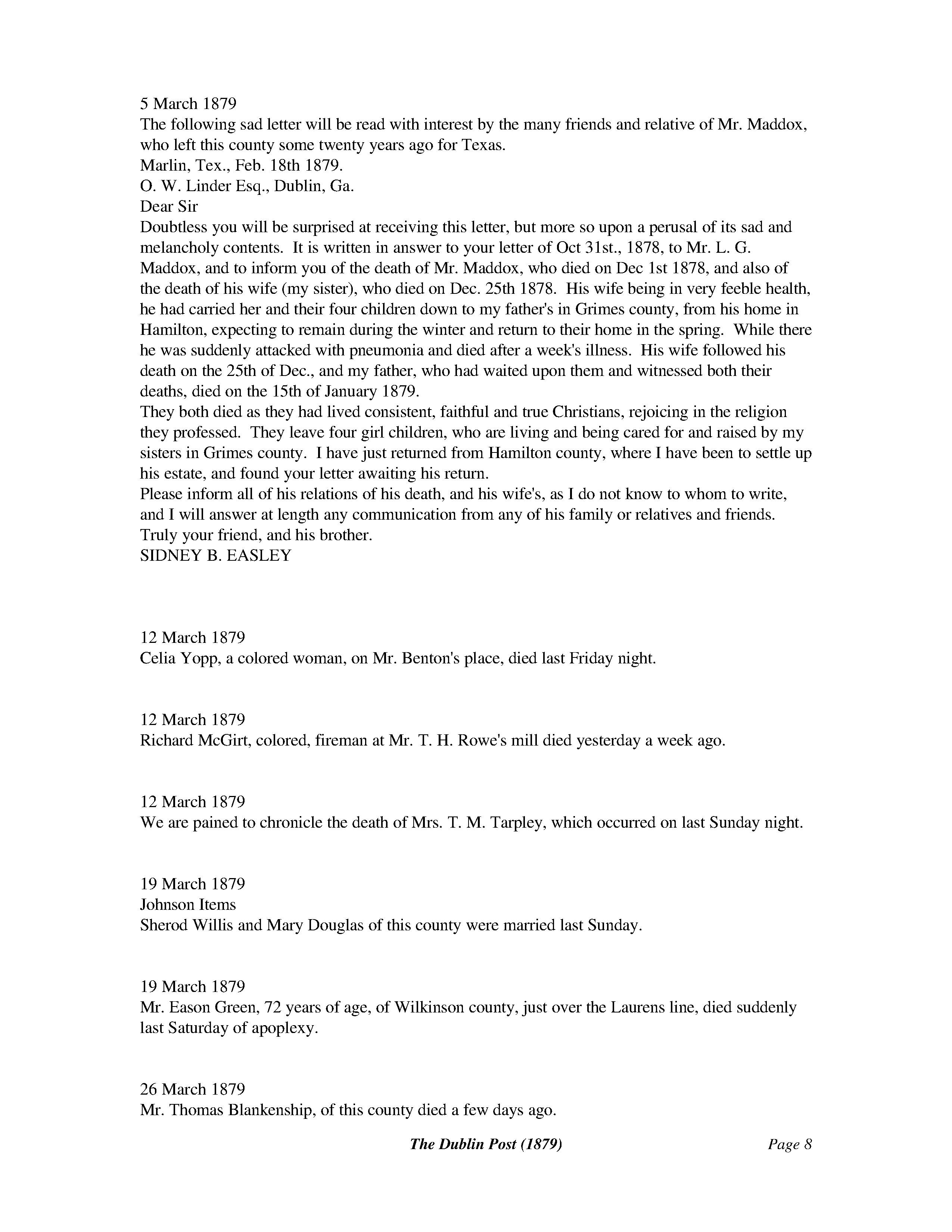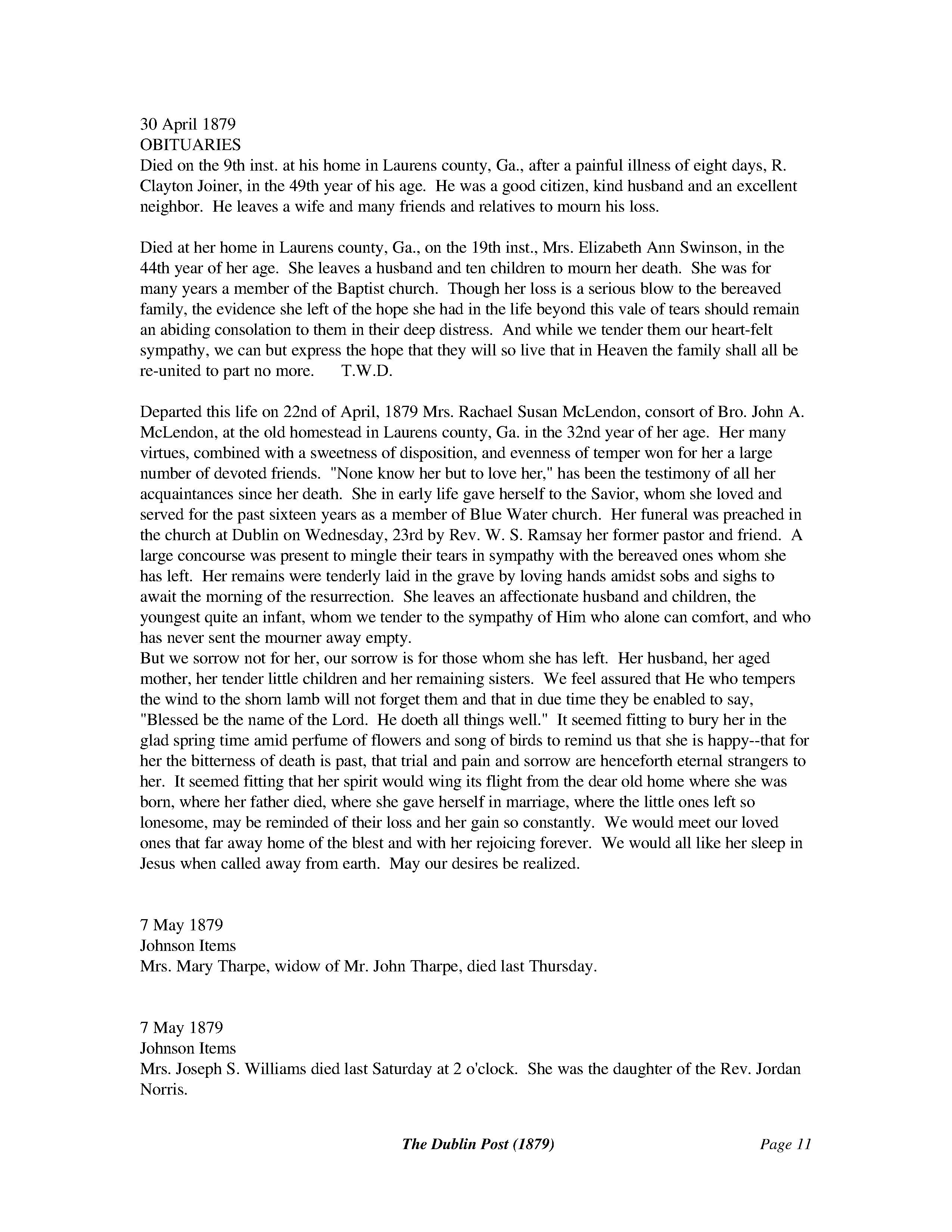 Dublin Post 1879 Abstracts Laurens County GAGenWeb A Proud Part of GAGenWeb |