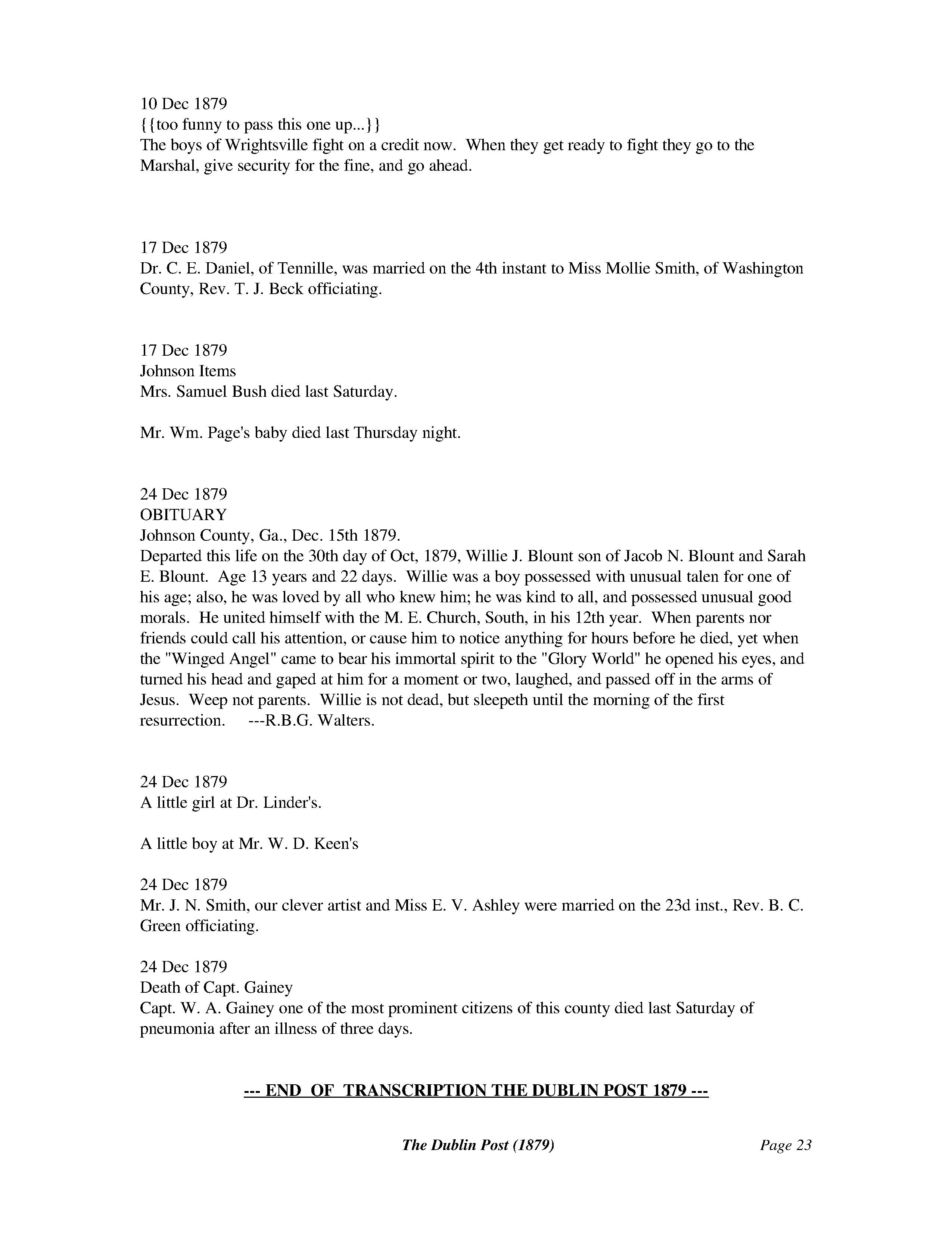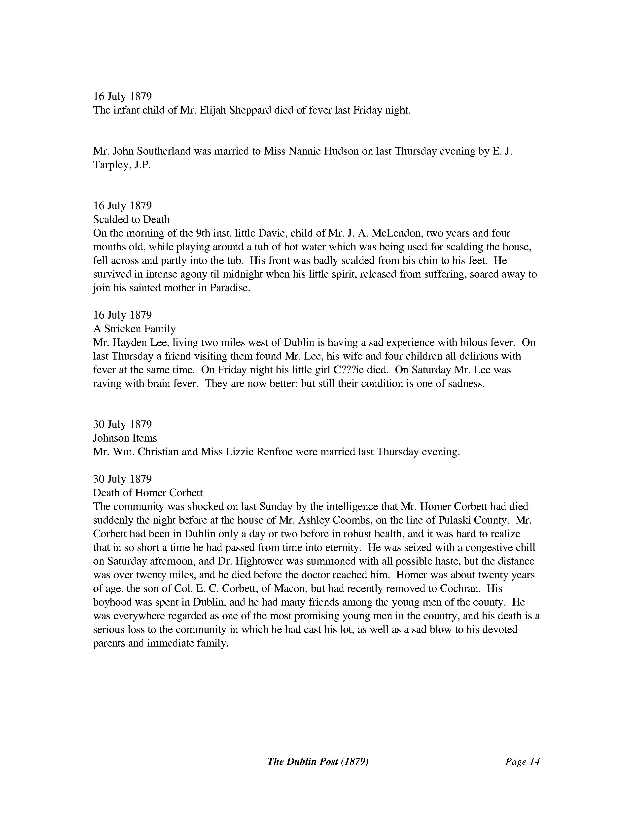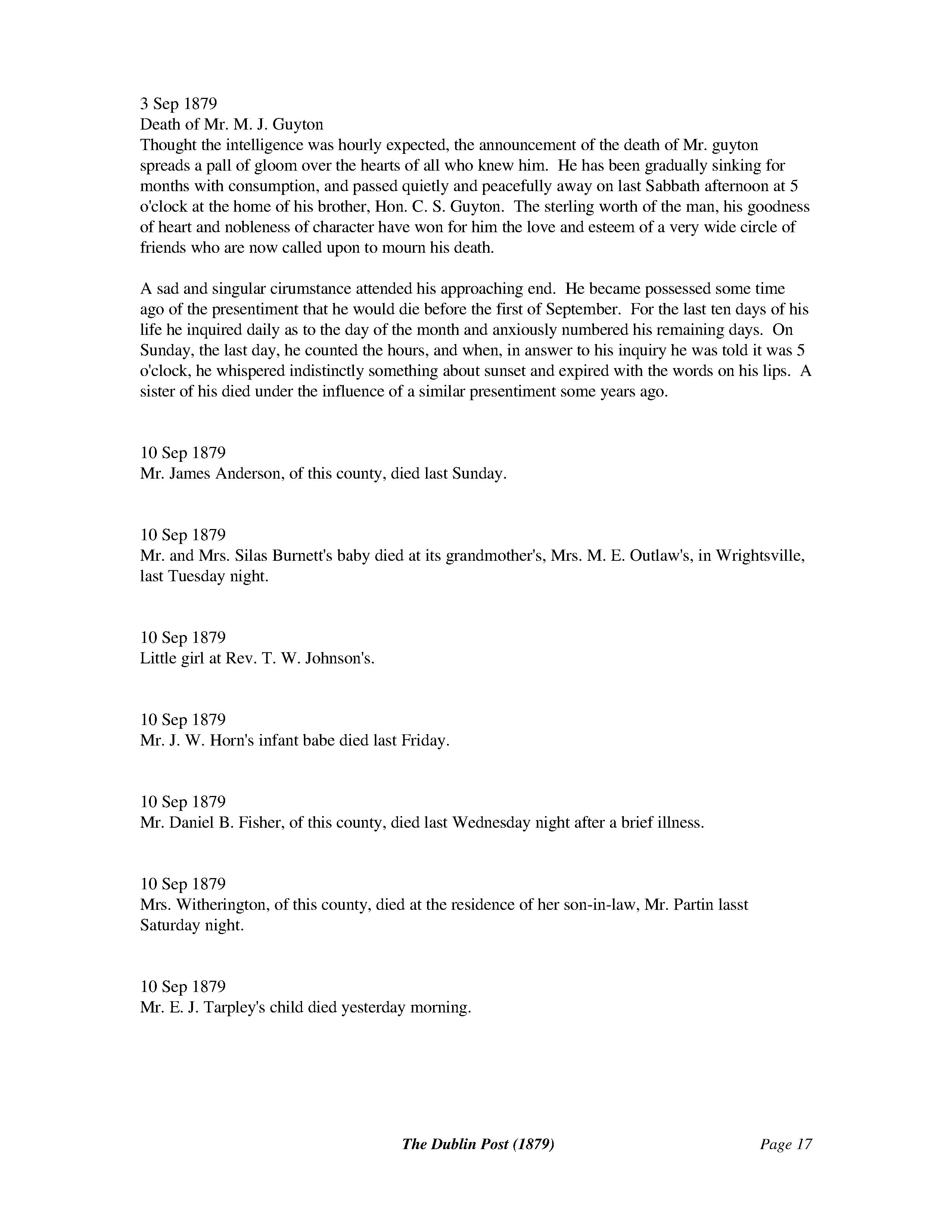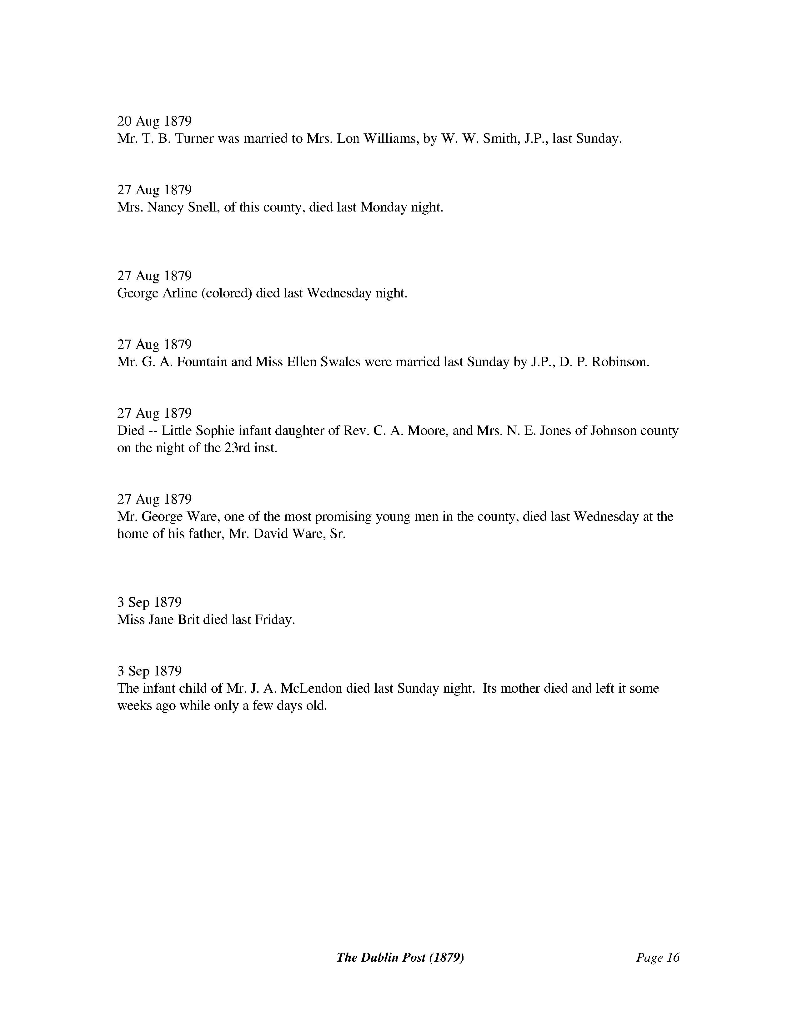 Dublin Post 1879 Abstracts Laurens County GAGenWeb A Proud Part of GAGenWeb |