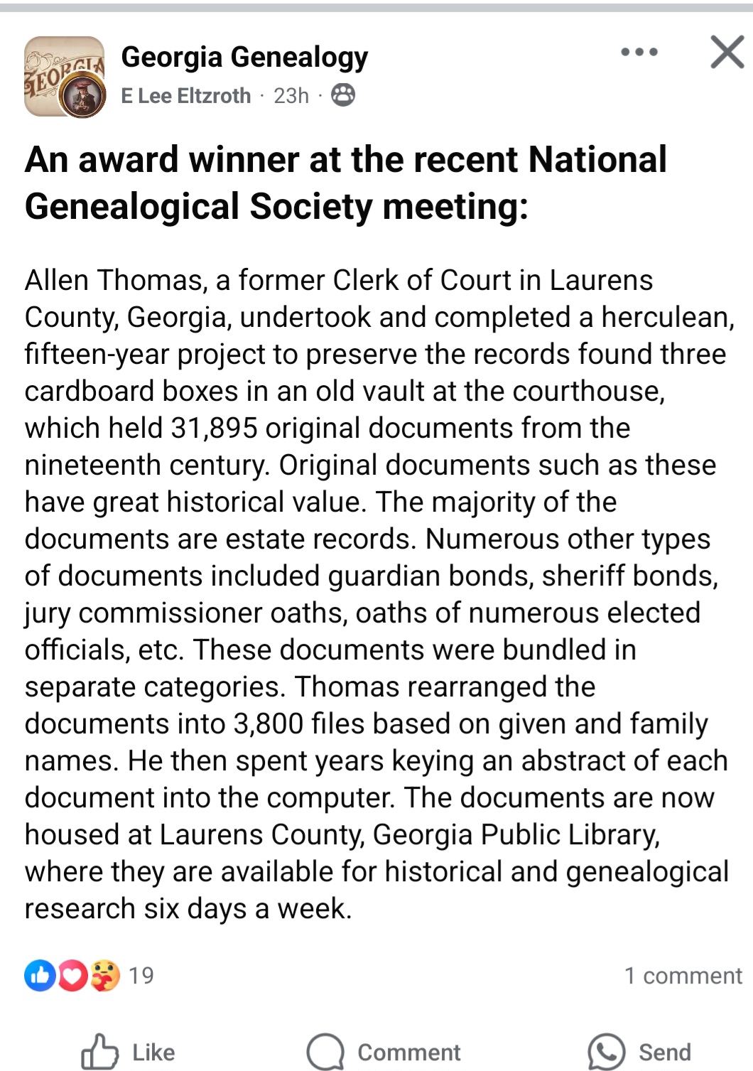 a former Clerk of Court in Laurens County, Georgia, undertook and completed