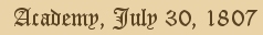 Augusta, Ga., September 28 -- Mr. Editor: It may interest you, and some of the readers of your valuable Gazette to see the accompanying catologue of the scholars of the Sunbury academy in 1807. It will be remembered that it was then a famous and flourishing institution of learning under the conduct of the Rev. Wm. McWhir, D.D. The catalogue is in manuscript, discolored by the stains of more than three quarters of a century. The town and academy live only in tradition, and of the pupils then present, all, I believe have passed into the realm of shadows.