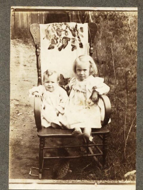 Infant is Myrtle Annie Seabolt, girl is Zora Alma Seabolt. Taken around 1908 near Seabolt cabin in Lumpkin County a mile or two from present day Turner's Corner.