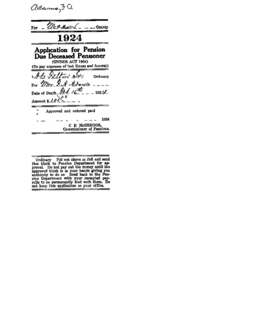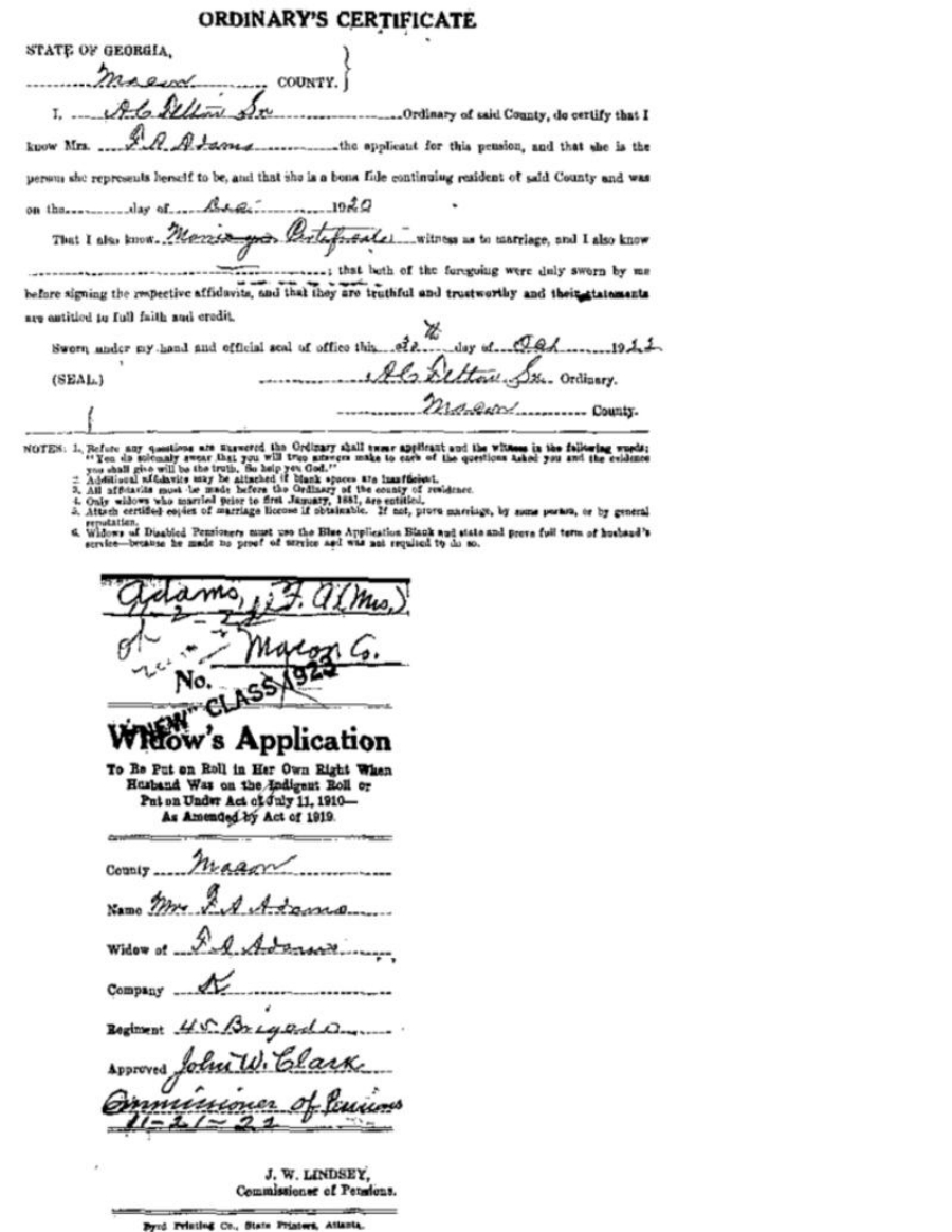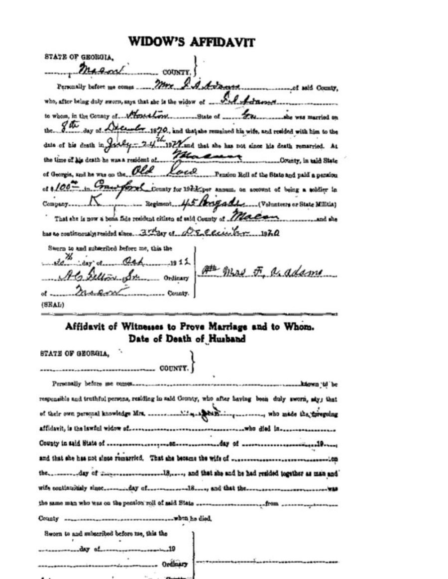 - Macon Co. GAGenWeb - F.C. Adams Widow's Application for Pension