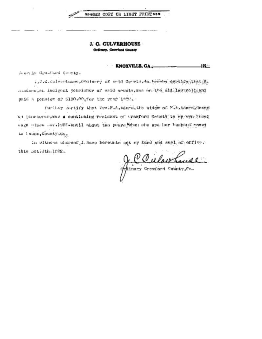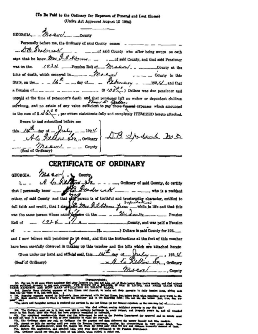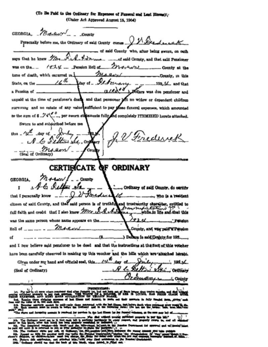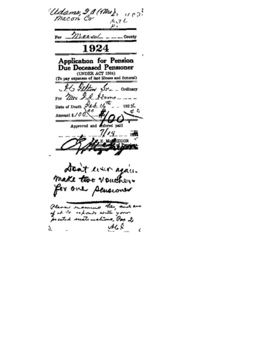 - Macon Co. GAGenWeb - F.C. Adams Widow's Application for Pension