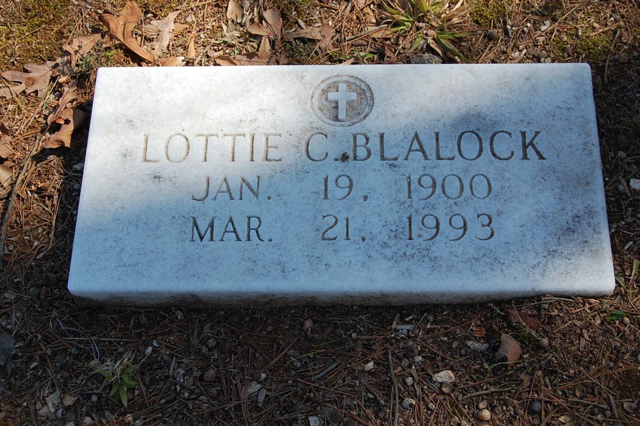 | Blalock | Lottie C. | Jan 19 1900 | Mar 21 1993 | matching stone w/Earnest C. |