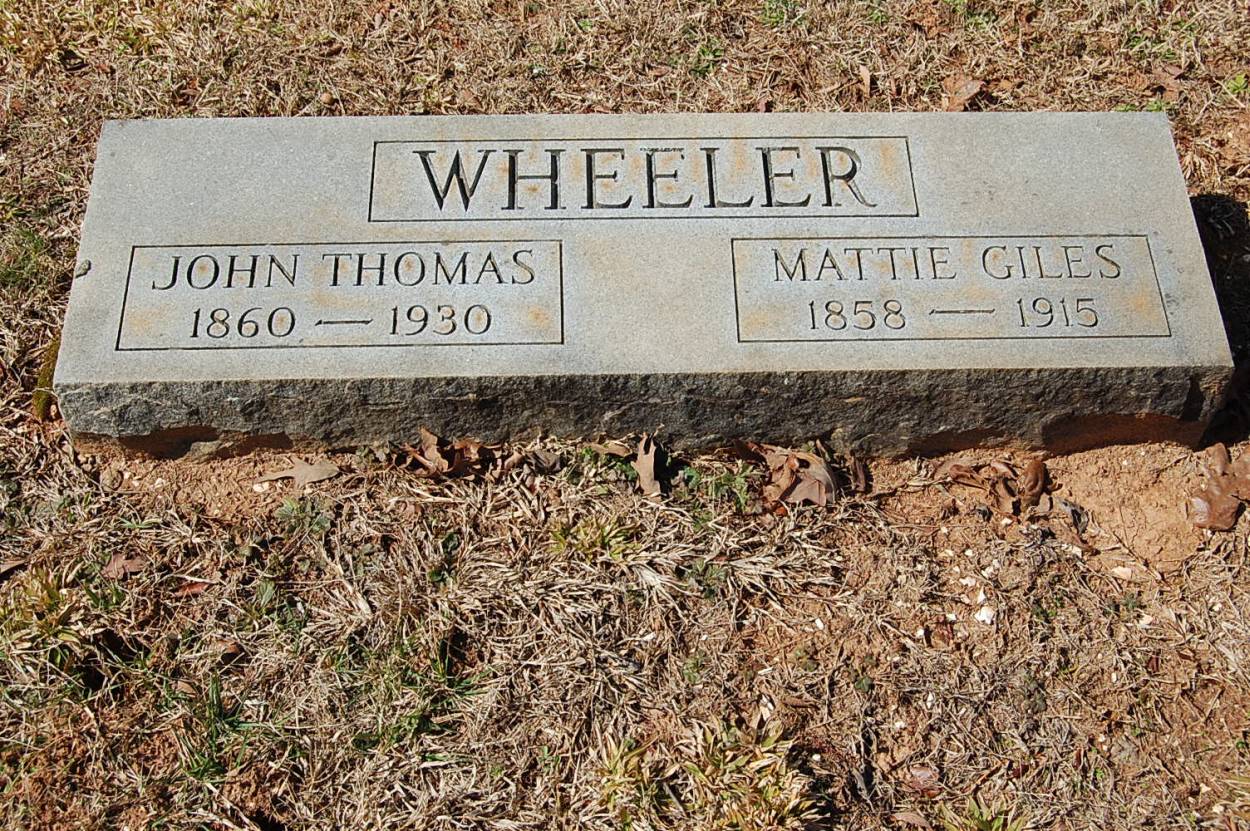 | Wheeler | Mattie Giles | 1858 | 1915 | shared stone w/John T. |