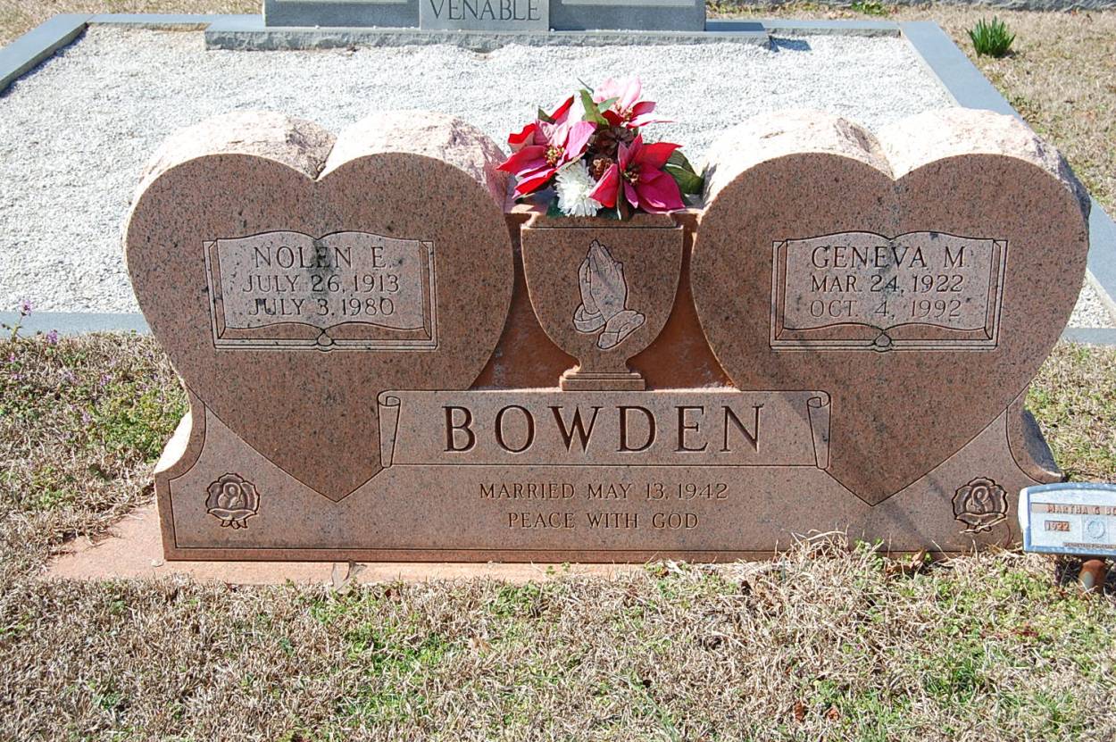| Bowden | Nolen Edwin | Jul 26 1913 | Jul 3 1980 | MSgt US Army WWII Korea shared stone w/Geneva M. |