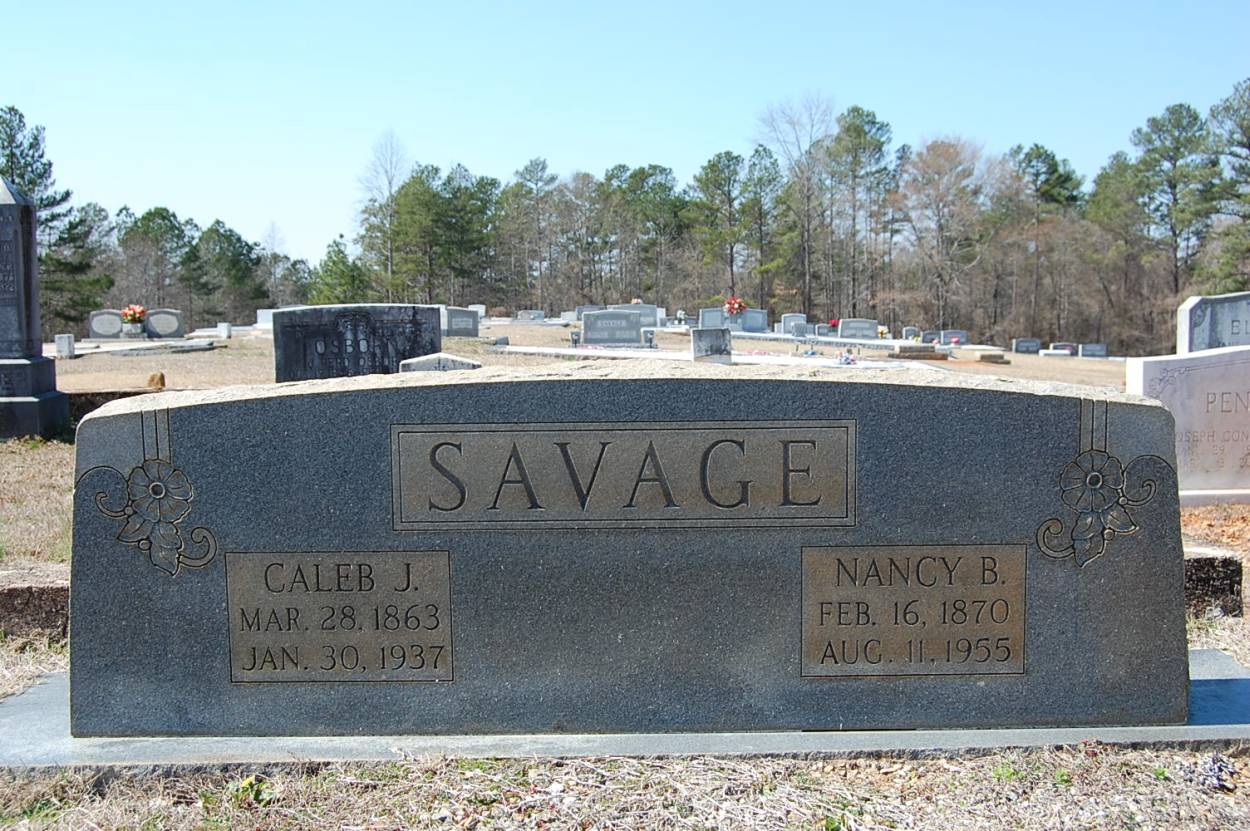| Savage | Caleb J. | Mar 28 1863 | Jan 30 1937 | shared stone w/Nancy B. |