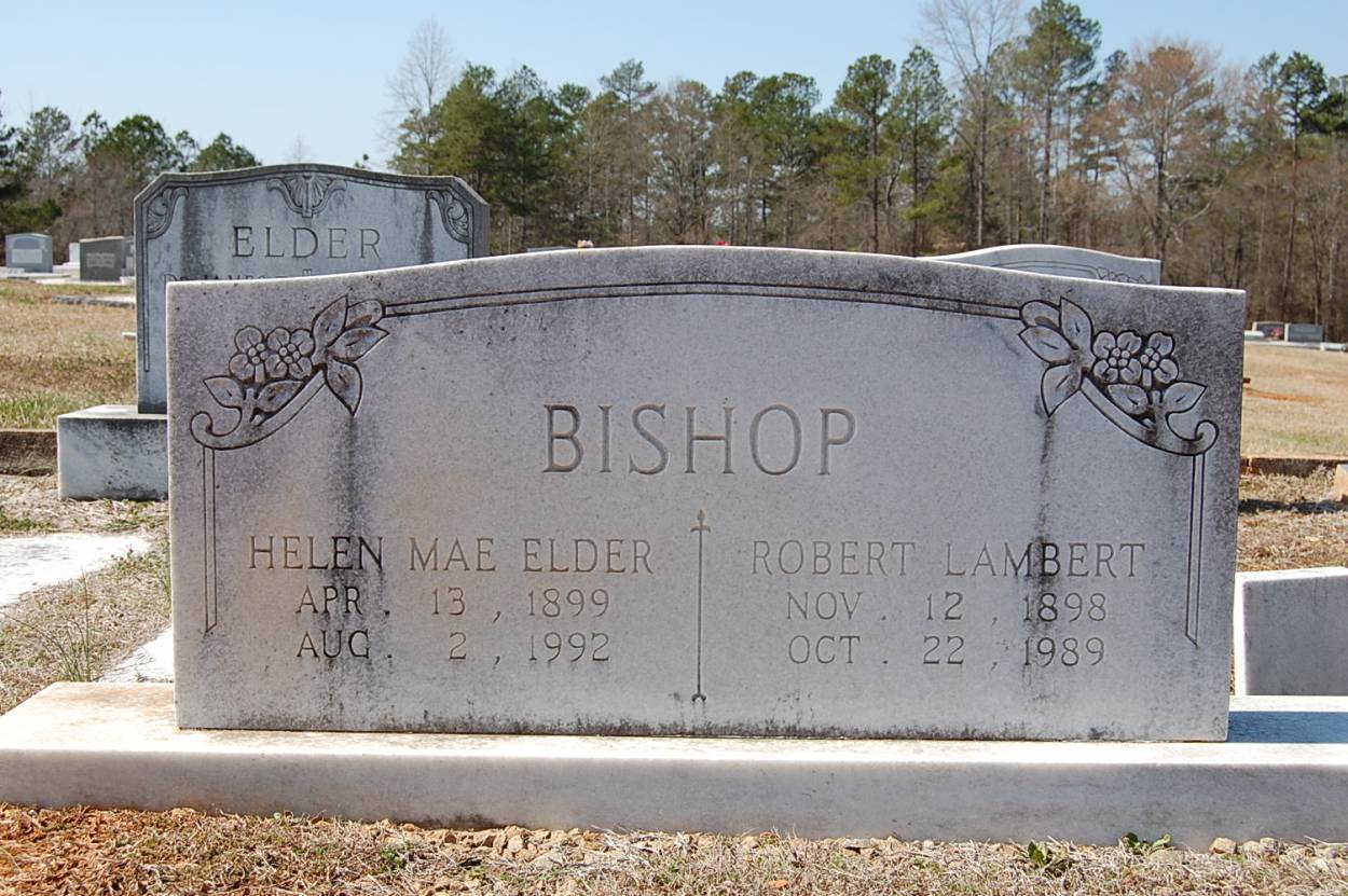 | Bishop | Helen Mae Elder | Apr 13 1899 | Aug 2 1992 | shared stone w/Robert L. |