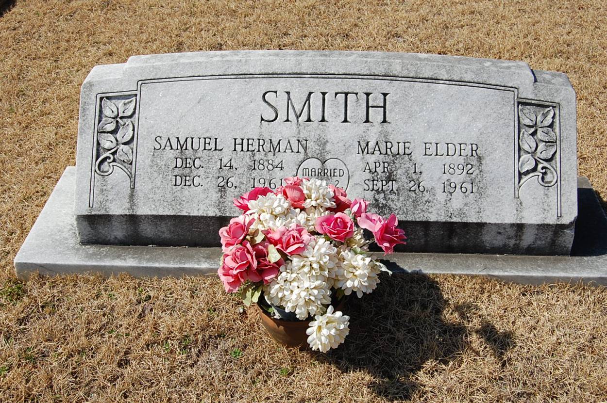 | Smith | Marie Elder | Apr 1 1892 | Sep 26 1961 | shared stone w/Samuel H. |