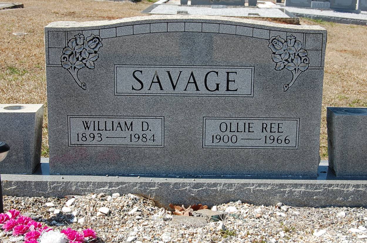 | Savage | William D. | 1893 | 1984 | shared stone w/Ollie R. Bridges FHM |