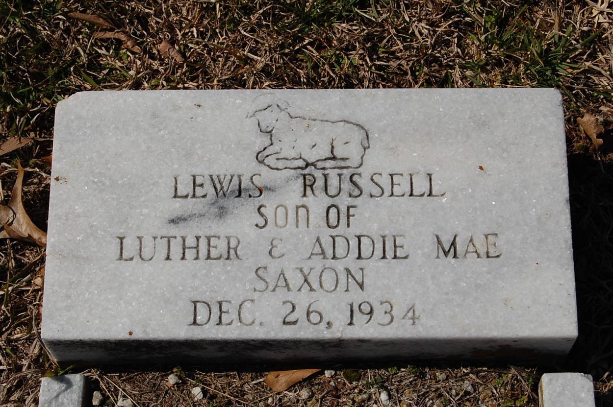 | Saxon | Lewis Russell | Dec 26 1934 | Dec 26 1934 | s/o Luther & Addie Mae |