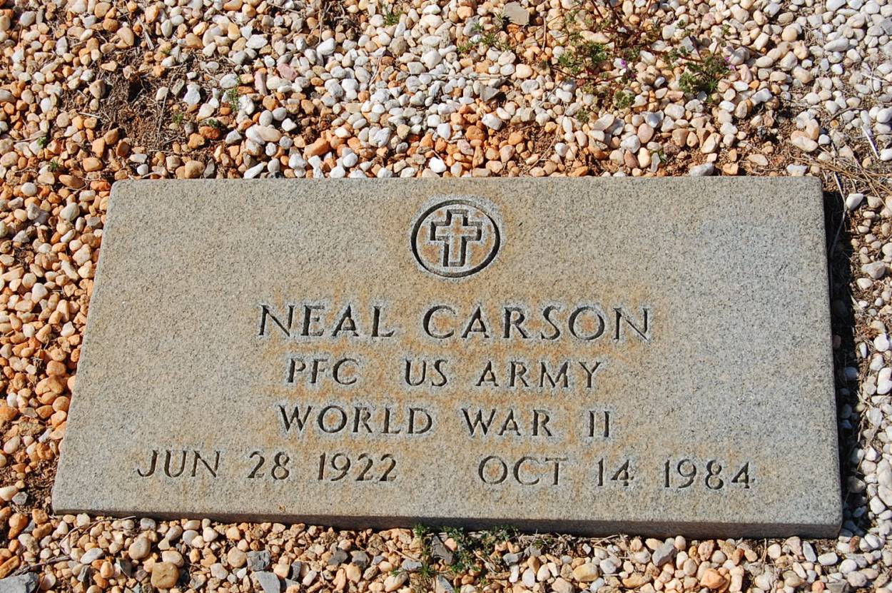 | Carson | Neal | Jun 28 1992 | Oct 14 1984 | PFC US Army WWII shared stone w/Eva C. |