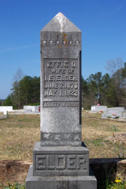 | Elder | Effie O. | Jun 2 1876 | May 1 1922 | w/o I.E. |