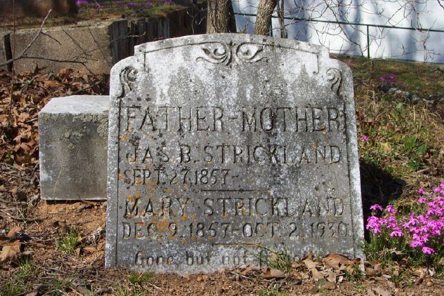 | Strickland | Mary | Dec 9 1867 | Oct 2 1930 | shared stone w/Jas. B. |