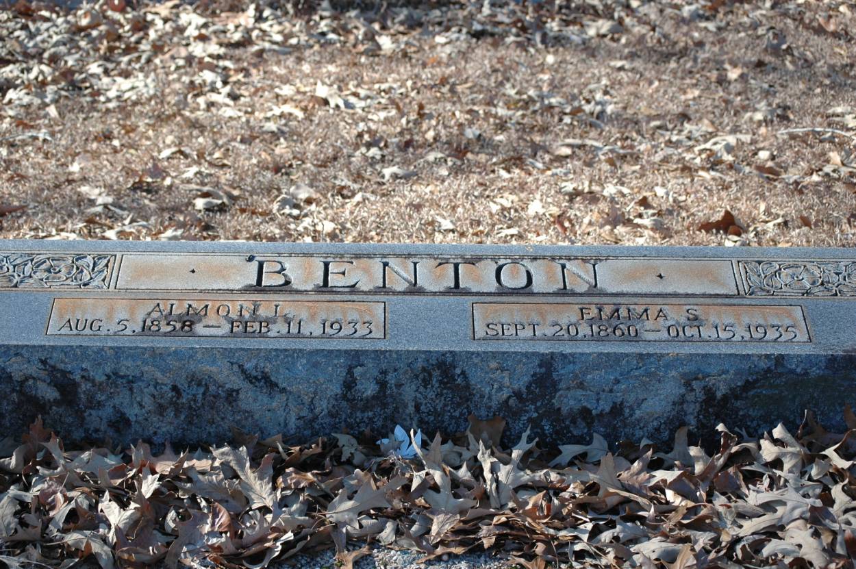 | Benton | Almon L. | Aug 5 1858 | Feb 11 1933 | shared stone w/Emma S. |