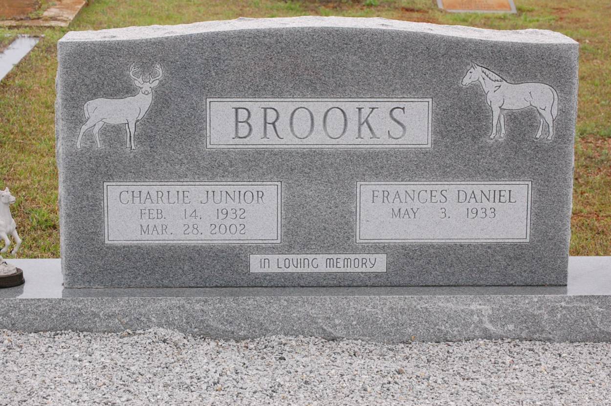 | Brooks | Charlie Junior | Feb 14 1932 | Mar 28 2002 | shared stone w/Frances D. |