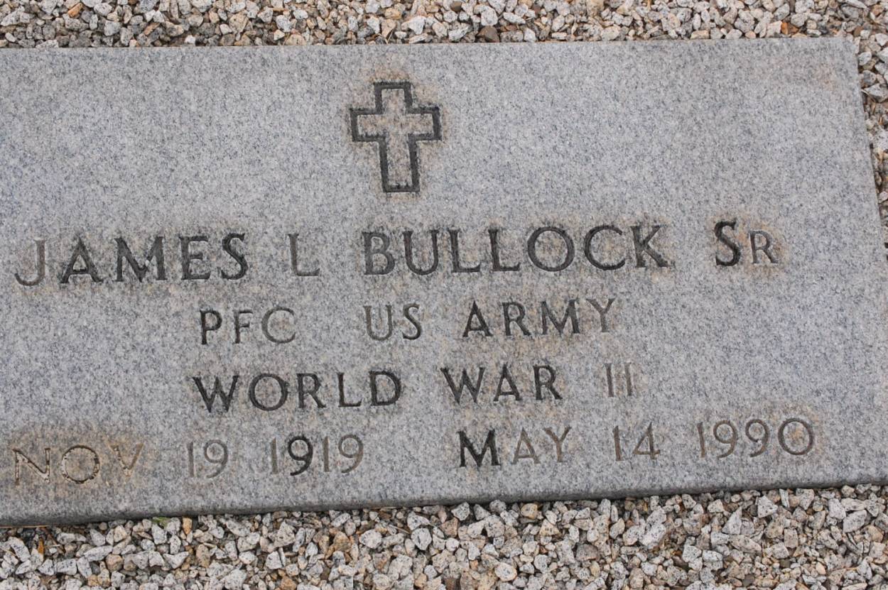 | Bullock | James L. Sr. | Nov 19 1919 | May 14 1990 | PFC US Army WWII shared stone w/Martha E. |
