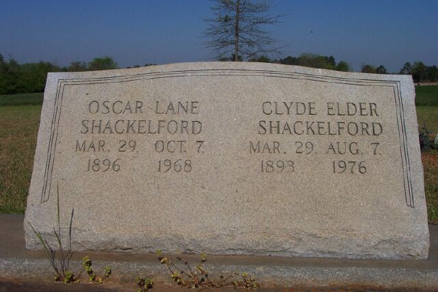 | Shackelford | Oscar Lane | Mar 29 1896 | Oct 7 1968 | shared stone w/Clyde E. |