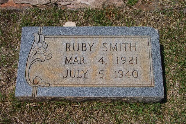 | Smith | Ruby | Mar 4 1921 | Jul 5 1940 | matching stone w/Jerry T. |