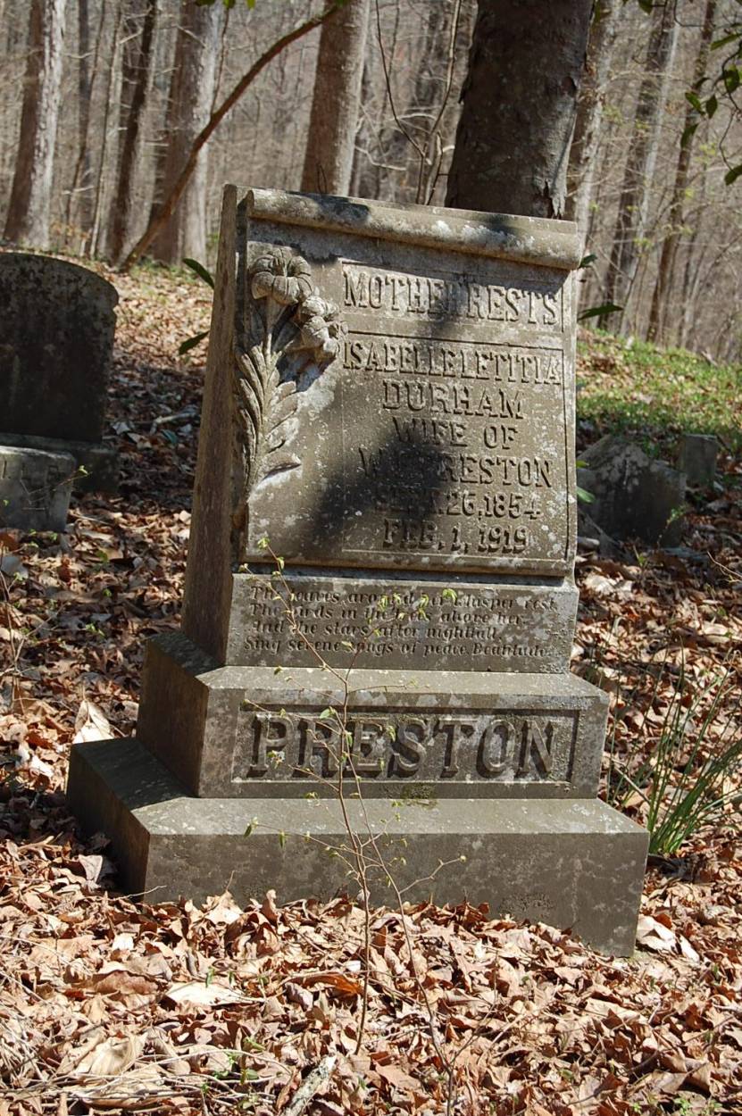 | Preston | Isabelle Titia Durham | Sep 26 1854 | Feb 1 1919 | w/o W.F. |