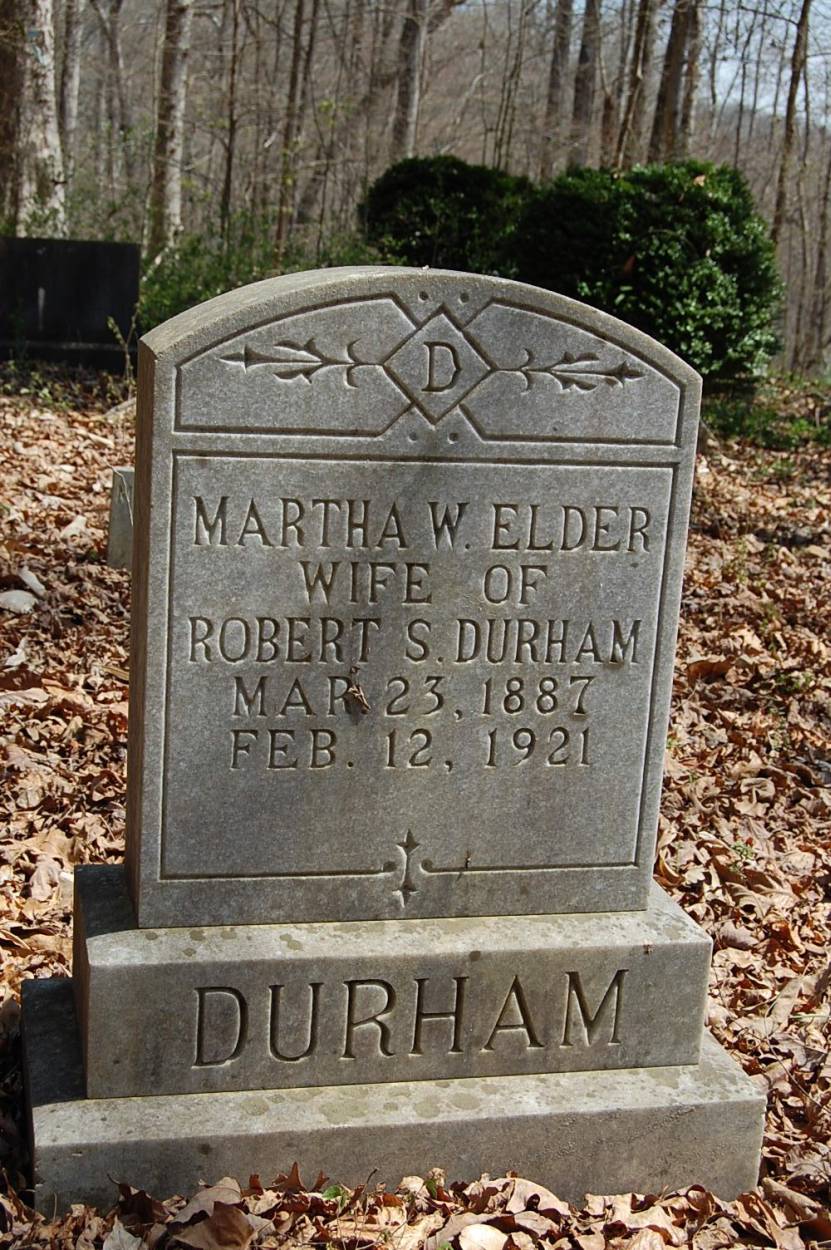 | Durham | Martha W. Elder | Mar 23 1887 | Feb 12 1921 | w/o Robert S. |