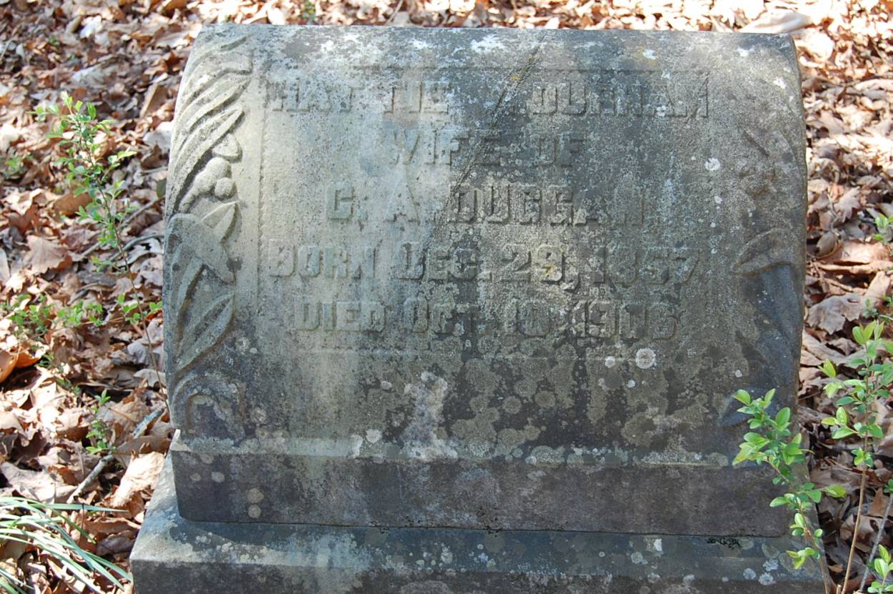 | Duggan | Hattie V. Durham | Dec 28 1857 | Oct 10 1906 | w/o G.A. |