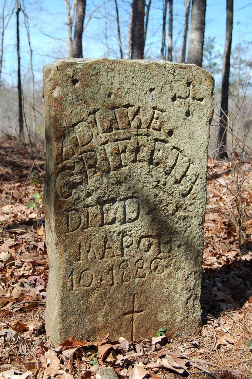 Griffeth Cemetery is located in what is now a subdivision, on the south side of Livingstone Trail, off Lenru Road. The GPS coordinates are N33°54.561' W083°30.728'.