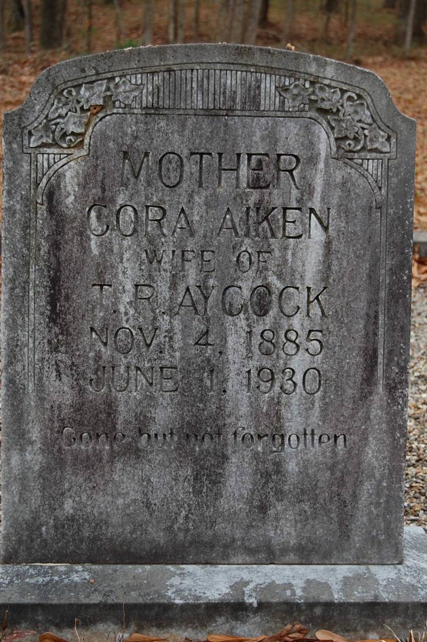 | Aycock | Cora Aiken | Nov 4 1885 | Jun 1 1930 | w/o T.R. |