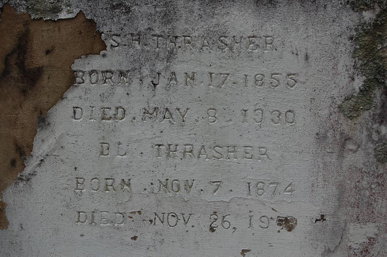 | Thrasher | S.H. | Jan 17 1855 | May 8 1930 | shared stone w/Bethel |