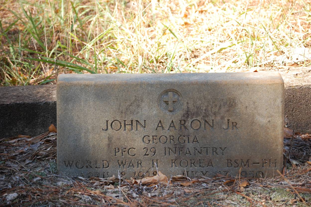 | Aaron | John Jr. | Apr 8 1928 | Jul 27 1950 | GA PFC 29 Inf WWII Korea BSM-PH |