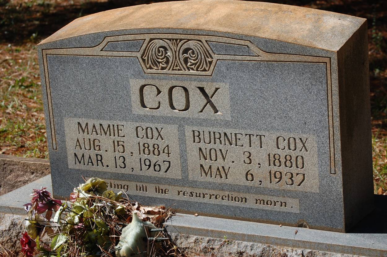| Cox | Burnett | Nov 3 1880 | May 6 1937 | shared stone w/Mamie |